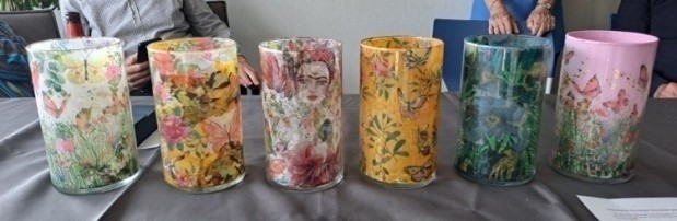 We maken iets van glas (vaas of waxinelicht) met servetten die jij zelf mag uitzoeken. Bij de reverse decoupage techniek plak je de plaatjes aan de binnenkant van je glazen voorwerp. Hou bij het kiezen van je plaatjes rekening met de vorm van je voorwerp. Als je iets hebt met veel bollingen/rondingen, dan werken kleine plaatjes makkelijker. De glazen vazen/waxinelichtjes zijn aanwezig! Op de voorbeelden zie je hoe het kan worden. Tijdens de workshop wordt alles uitgelegd en krijg je hulp bij het maken van iets moois.